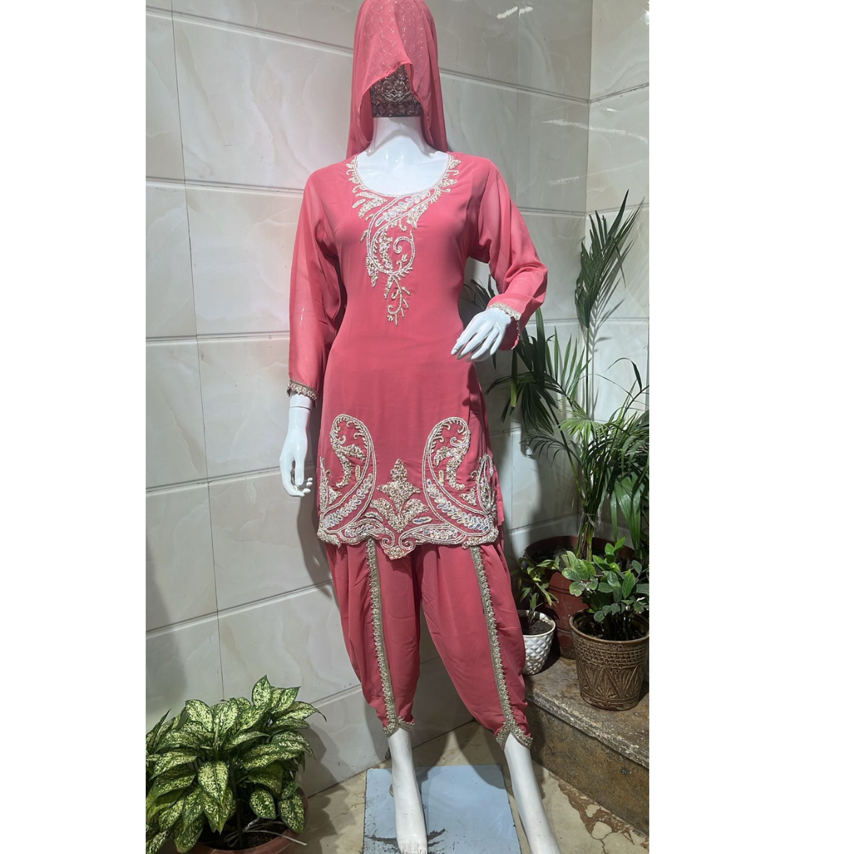 Step into timeless elegance with our Elegant Rose Pink Embroidered Patiala Suit. Crafted from premium fabric in a stunning rose pink shade, this traditional ensemble beautifully blends comfort and sophistication.