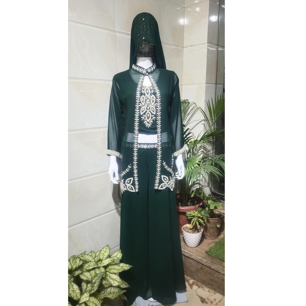 •Style: 3-Piece Set (Top, Palazzo, Embroidered Jacket)